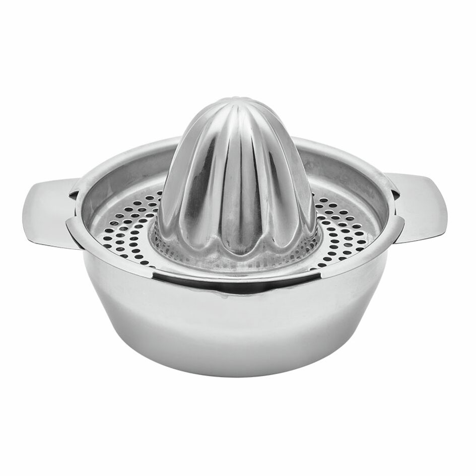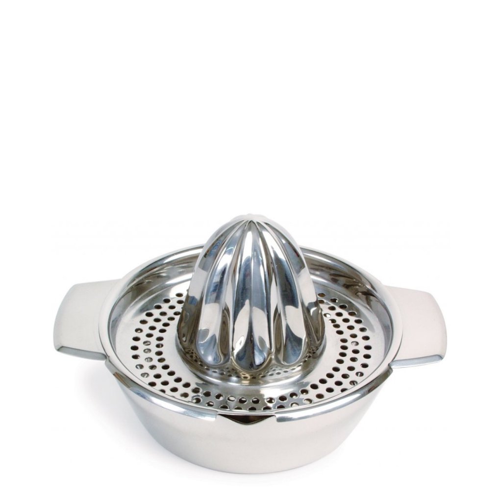 Citrus Juicer in Stainless Steel – Classic and Timeless. The traditional design lets you twist the fruit by hand directly against the cone, ensuring maximum juice extraction without hassle.