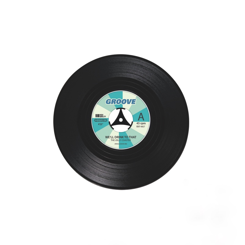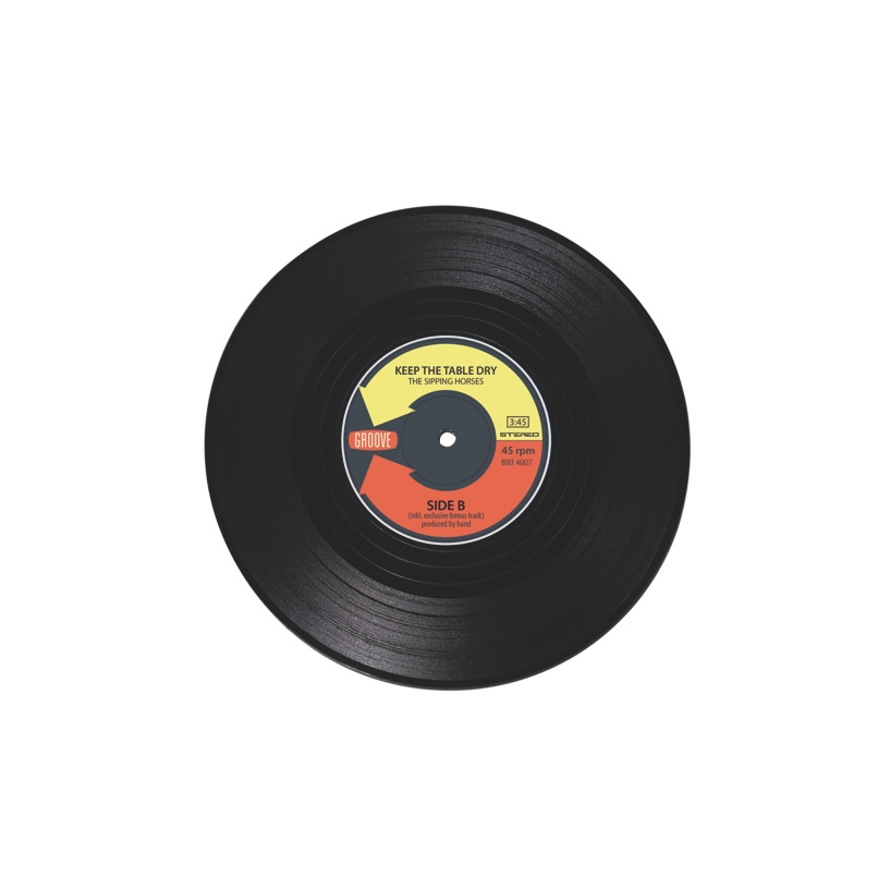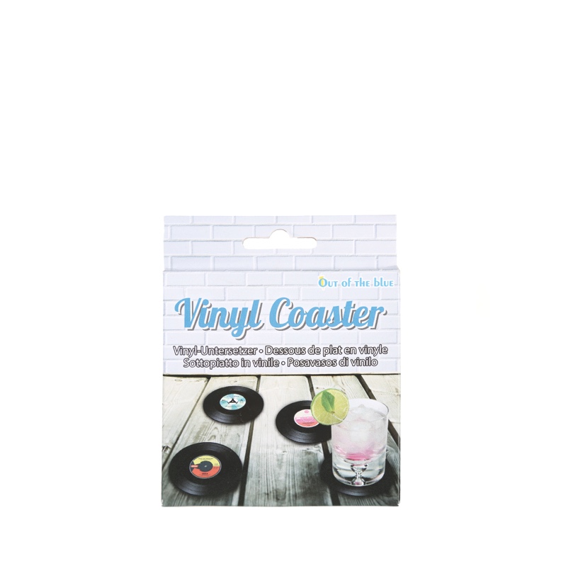 Vinyl Coaster coasters 4-pack with a wonderful retro feel. These coasters are made of vinyl plastic and designed as small LPs with 4 different motifs and are perfect for drinks, cocktails, wine glasses and beer glasses. Really nice coasters that create a feeling of the 70s, and are perfect for all music nerds out there.