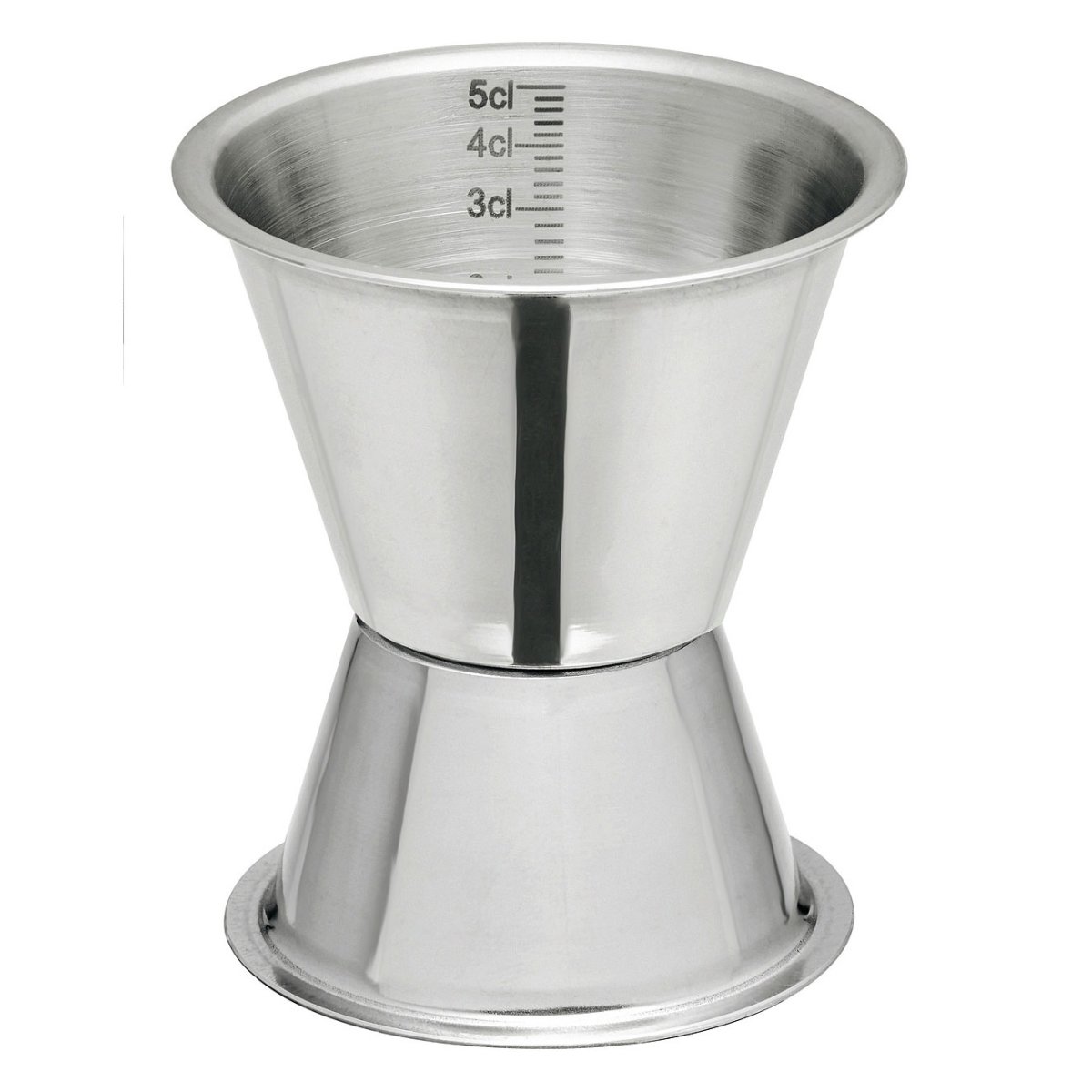 Jigger stainless with dimensions on the inside 3-5 cl where you can easily see how much of each ingredient you mix in your drink. A simple tool in the bar.A stylish jigger made of stainless steel with a high luster.
