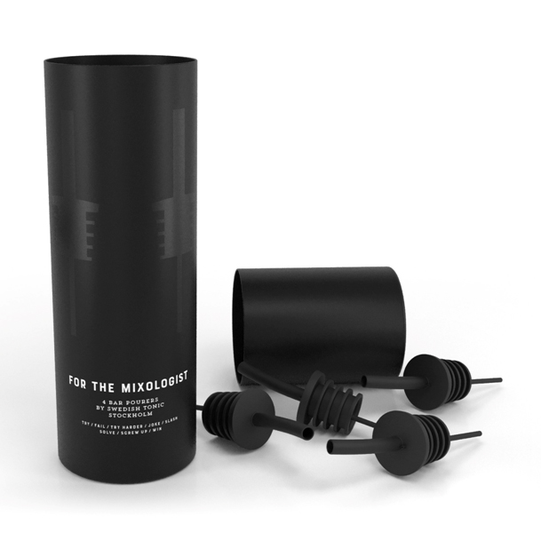 Swedish Tonic pourer slow 4-pack to avoid spillage and be able to control the amount of alcohol when you mix your drinks. Delivered in a nice matt black tube.