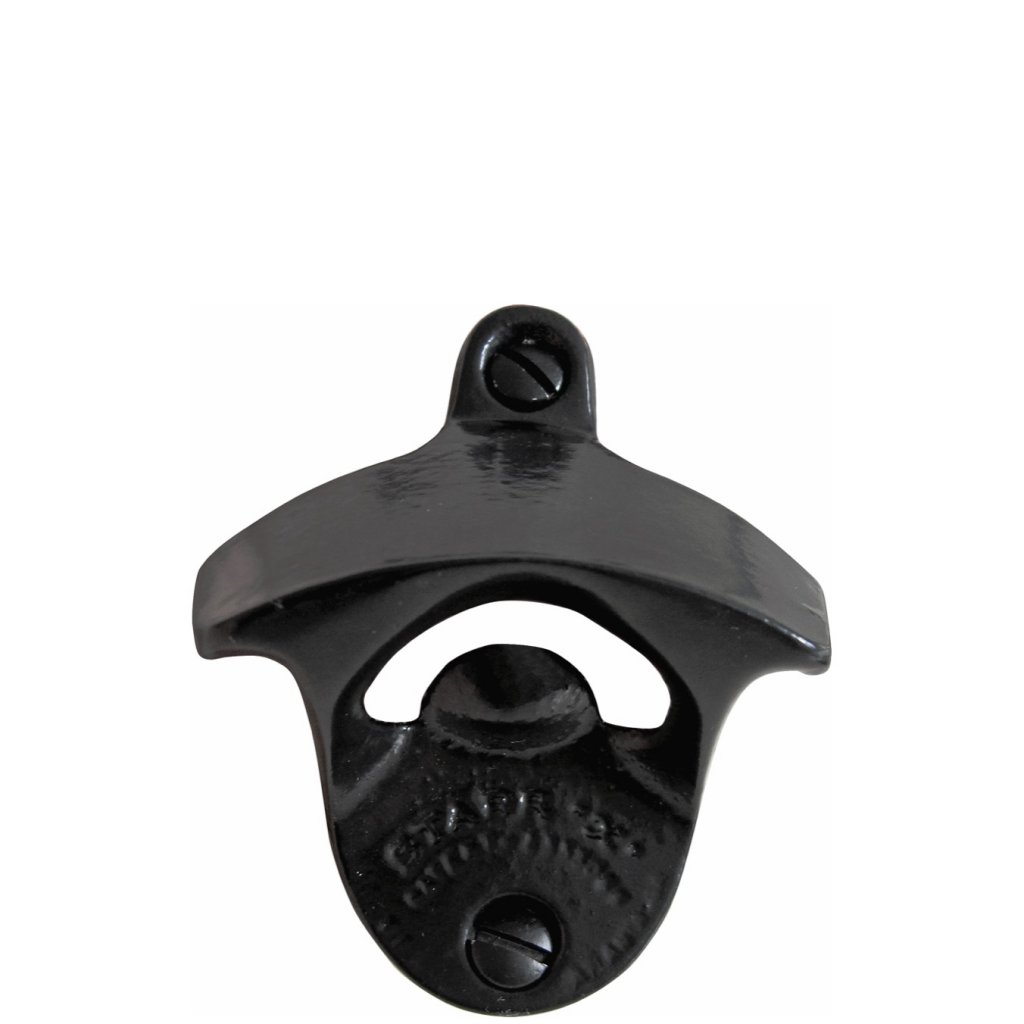 Wall-mounted opener - cast iron. A can opener in black cast iron that is mounted on the wall. Really robust and handsome bottle opener for the home bar, in the kitchen or similar. Comes with 2 black screws.