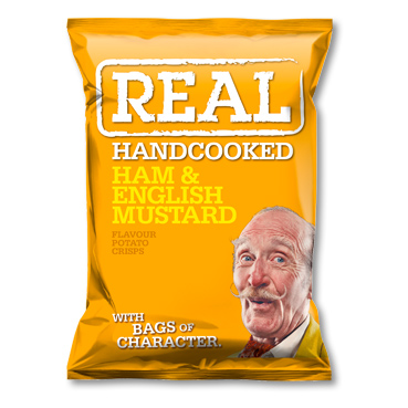 Real Chips - ham and English mustard 35 grams are handmade chips with a taste of ham and English mustard made by Real. Ridiculously good chips.