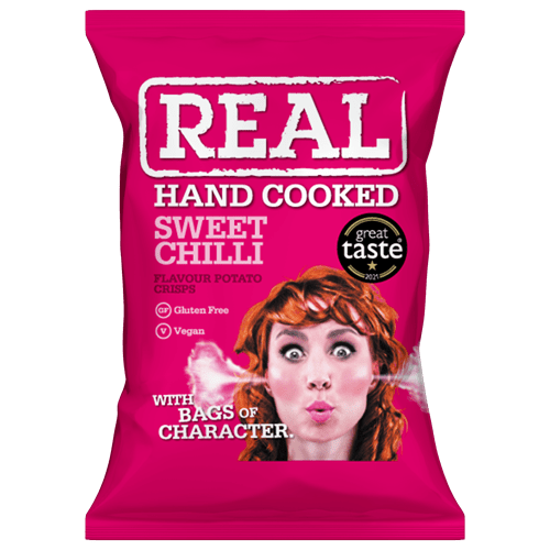 Real Chips - sweet chilli 35 grams with a big taste of Sweet Chilli that makes your taste buds go sideways, sweet and spicy at the same time.