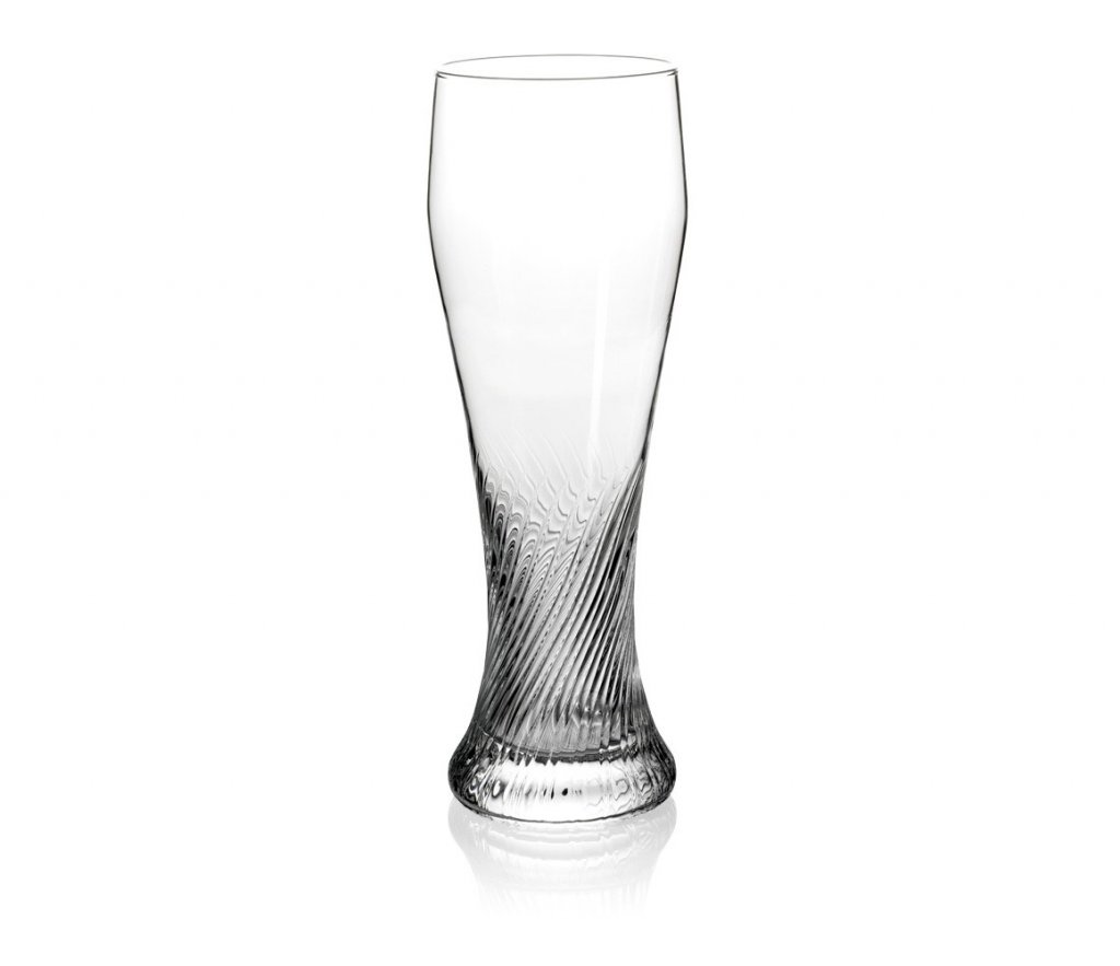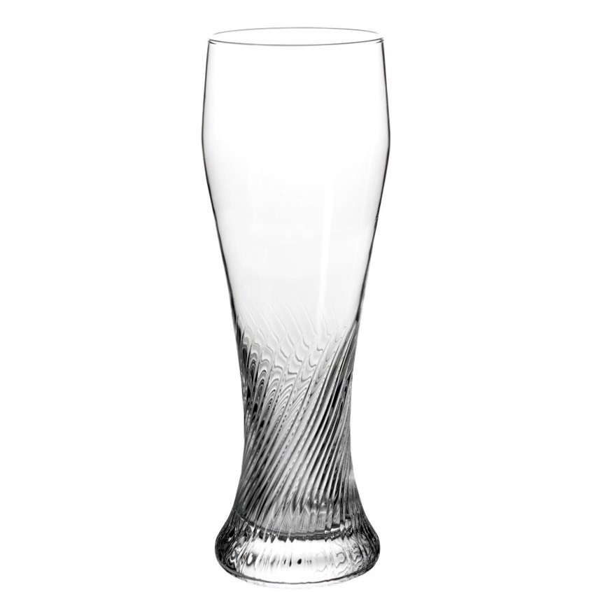 Riegsee beer glass 50 cl is a handsome Weissbier glass that has a beautiful grain pattern at the bottom that is classic for wheat beer glass. Riegsee beer glass has an expanding glass body that folds inwards at the top, which helps the foam stability and preserves the aromas. A perfect beer glass for a refreshing Hefeweisse or a refreshing pilsner.