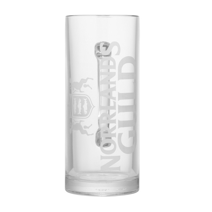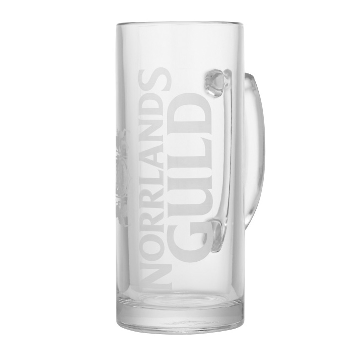 Norrlands Guld ölsejdel 40 cl. Norrlands Guld is a light lager that is advantageously taken from this handsome sail. Norrlands Guld's logo with frosted decor on the glass and the cup has a grip-friendly handle. The glass has a marking on the side that indicates 40 cl.