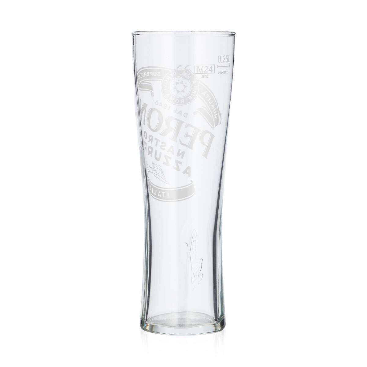 Peroni Nastro Azzurro beer glass 25 cl is an Italian beer classic – few things quench your thirst as well as an ice-cold Peroni on the beach. Why not enjoy it in its original beer glass! With a slight curve for improved grip and a frosted logo all around, this beer glass is truly stylish. Peroni Nastro Azzurro should be enjoyed with style, right!