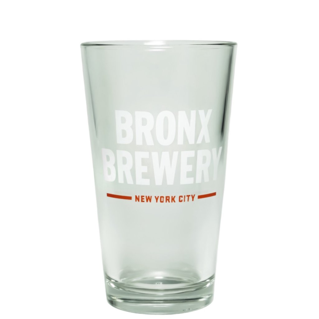 Bronx Brewery beer glass. The success behind the start-up New York brewery Bronx Brewing Company comes a lot from their powerful and clear slogan: Do one thing, Do it right. Bronx Brewing makes tasty, solid beers whose popularity is only increasing. This beer glass is at least as clear. Sharp lines, simple messages and attractive design, with the logo on one side and the brewery's name on the other.
