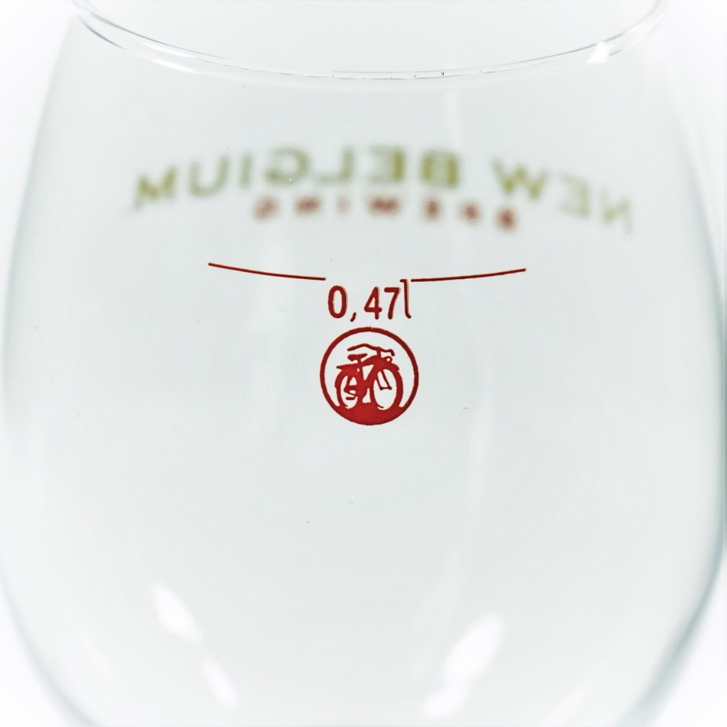 New Belgium Beer glass 47 cl. One of the most prominent breweries from the American craft beer movement. New Belgium in Fort Collins, Colorado, has since its launch in Scandinavia offered first-class beers with both American and, as the name suggests, Belgian influences. This beer glass is a beautiful cup on a stable foot and stem. The New Belgium logo is printed in gold and red on the front and on the back there is a small picture of the model of bicycle that all employees at New Belgium receive as a welcome gift.