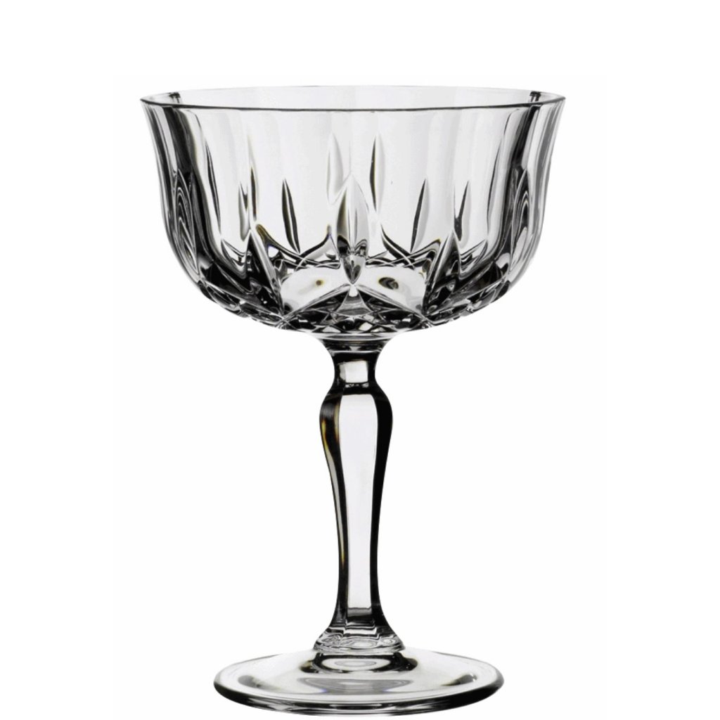 Opera Coupette champagne glass. An elegant champagne glass in crystal from Italian RCR. This glass is of the so-called balcony model and with its delicious design has a really classic expression. Produced in organically certified crystal glass and ideal for different types of sparkling wines.