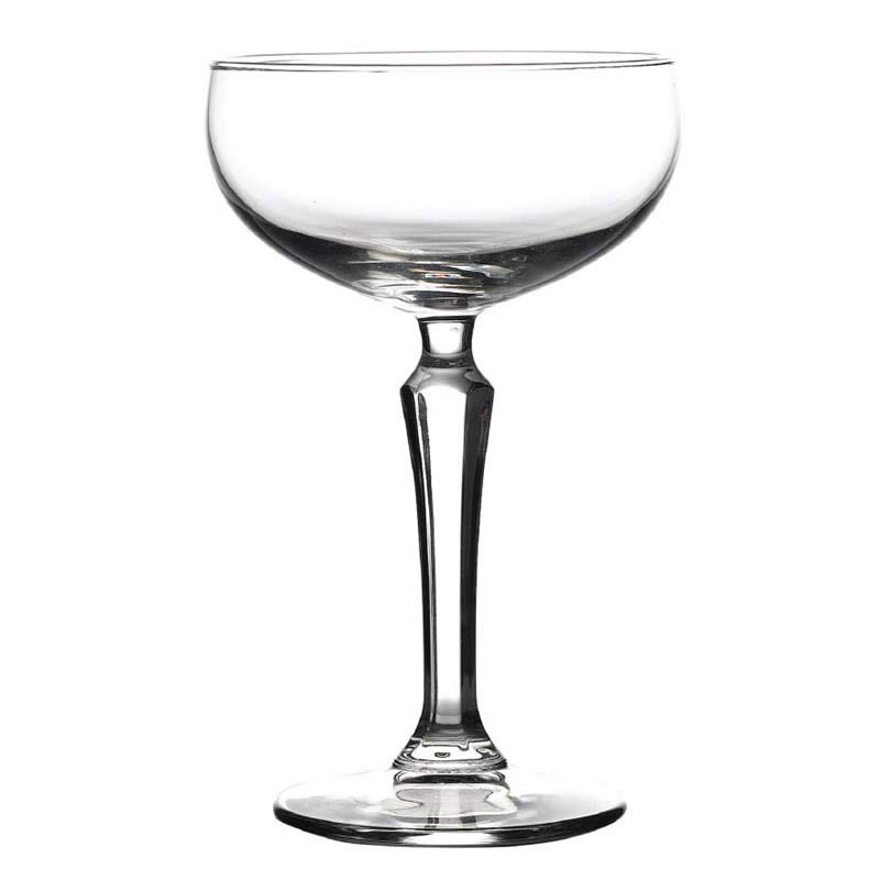 Speakeasy Coupe champagne glass 20 cl. A beautiful, classic coupe glass for champagne and cocktail designed in Art Deco style. Speakeasy Coupe has a round, bowl-shaped body and a relatively high foot that is hexagonally ground with a beautiful profile.