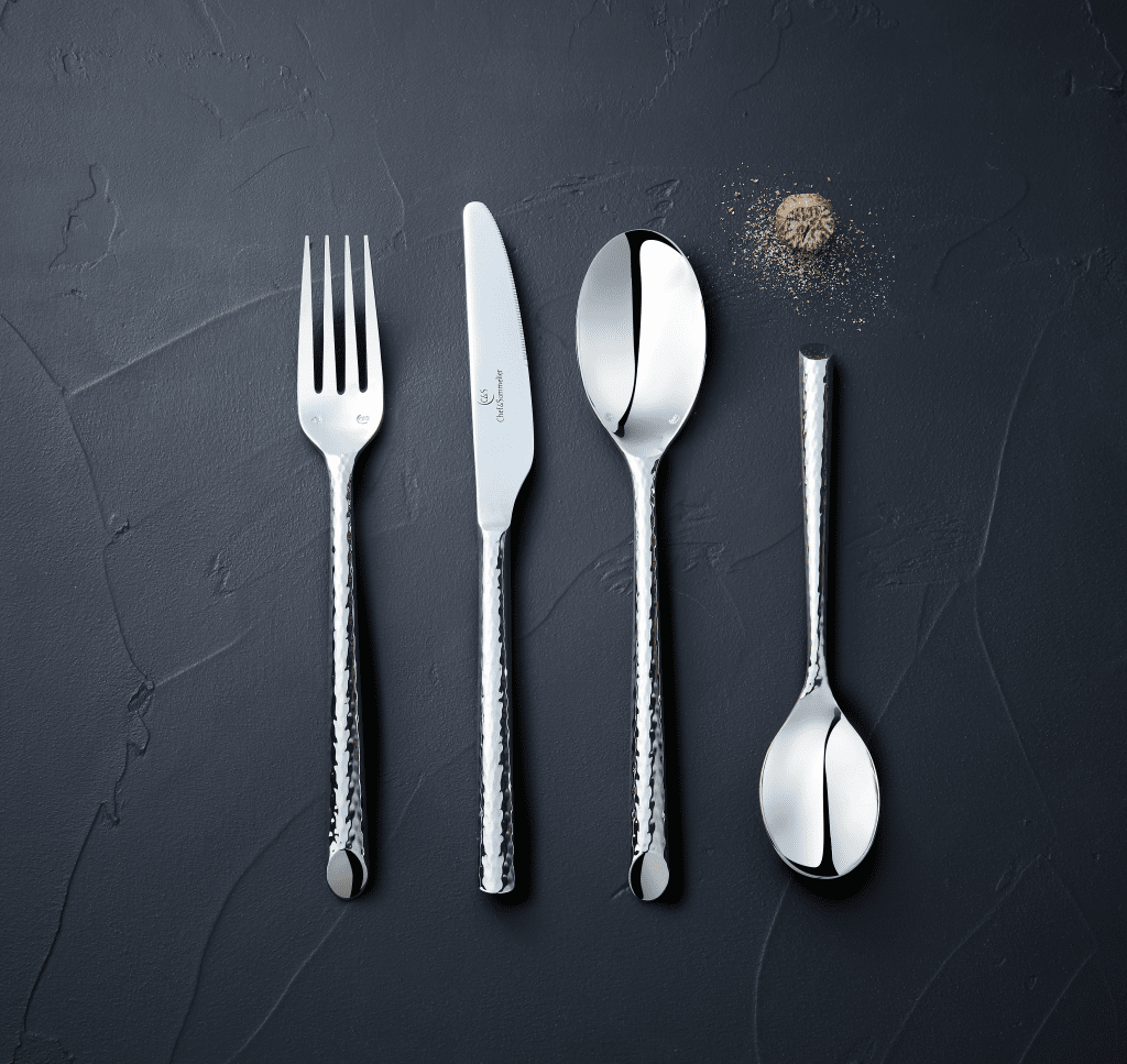The Acoma series from Chef & Sommelier combines an elegant design with a refined hammered finish. An ideal series of cutlery for the modern dining table.