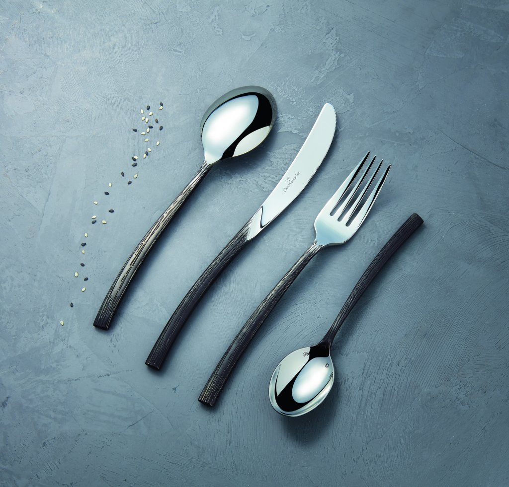 Black Oak table spoon 209 mmMODERN WOODSophisticated and modern style for a unique collection from Chef & Sommelier. The refinement of the spoonfuls, forks and knifes, combined with the curves of a wooden finished handle gives a natural touch to the Black Oak cutlery series.