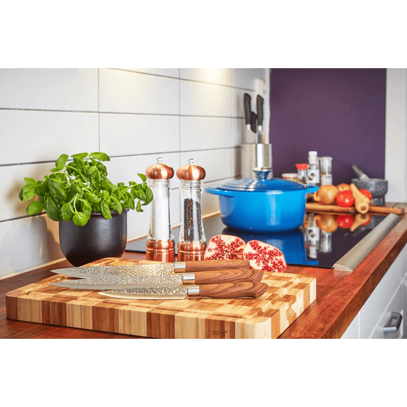 Knife set Akira from Dorre which contains 3 knives with a brown plastic handle in imitation wood. All the knives are perfectly adapted for their respective purposes. Complete set of knives needed for the kitchen!