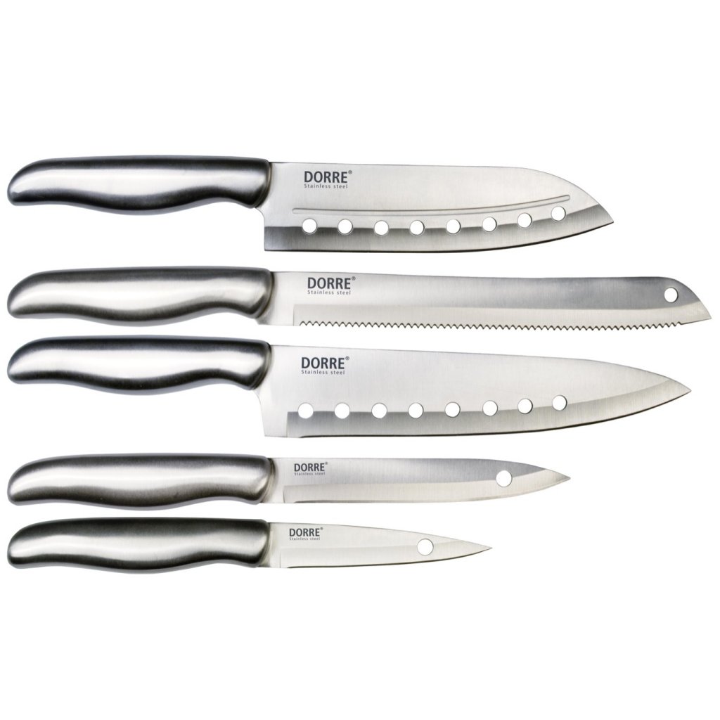 Knife set Calgary. A set of 5 steel knives. All knives are perfectly adapted to their respective purposes. Complete set with all the knives you need for the kitchen!