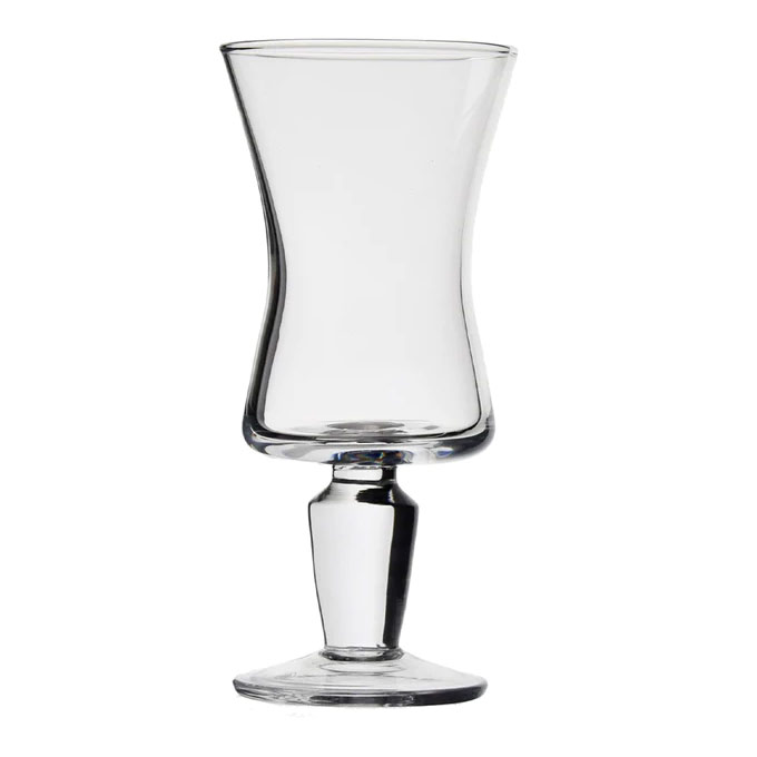 The glass has a short stout stem with a wide base.