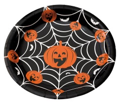 Paper plate for Halloween, 8-pack. Invite your friends to a Halloween party! The plates have spider nets and pumpkin motifs. Serving suggestions: maybe pumpkin with spider web. Tablecloth with matching mugs and napkins from the same series.