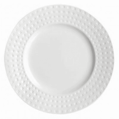 Satinique Side Plate 175 mm is a stylish side plate from Chef & Sommelier in white porcelain with small embossed squares along the edges. The Satinique side plate is a smaller plate that is ideal for starters and desserts, as well as smaller dishes. Its exquisite design looks very elegant when set with candlelight, as the shadow play of the small embossments elevates the contents of the plate to new heights.