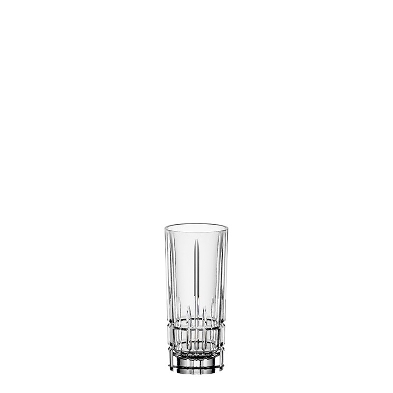 Perfect Serve shot glass 4-pack in crystal from Spiegelau with nice cuts. Perfect Serve shot glass has a narrow and high shape that fits perfectly with both shaken shots and flavored distillates such as Jägermeister or Fernet and more. This shot glass has grindings that start in a pattern on the underside of the glass and extend up along the body. The Perfect Serve series has been developed by Spiegelau together with the renowned and internationally acclaimed bare expert Stephan Hinz.