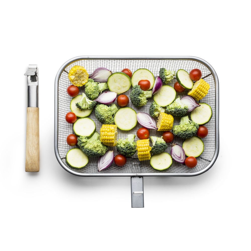 Barbecue basket is a smart basket in metal for grilling mushrooms and vegetables and more. With the ingenious construction of the Sagaform BBQ grill basket, you can grill your peppers or mushrooms without having to worry about them falling down.