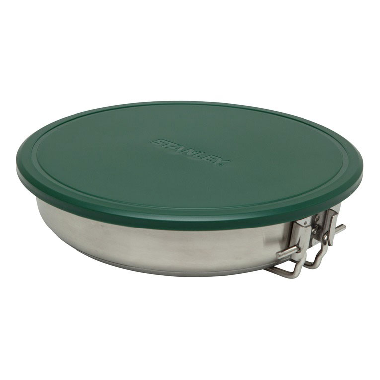 Stanley Adventure Frying pan green 9 parts with 1 frying pan with detachable handle, 1 frying spade, 1 cutting board, 2 plates, 1 dish, 1 lid and 2 sporks.