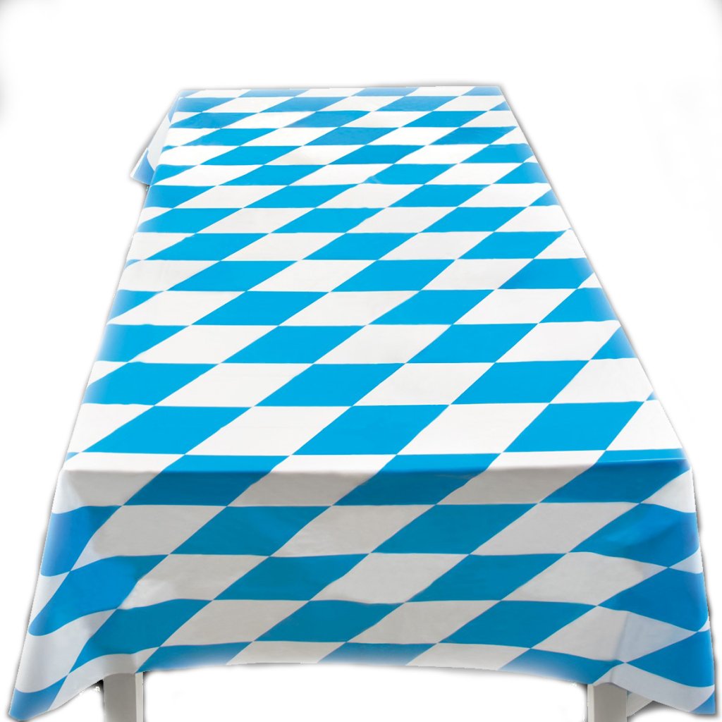 Oktoberfest tablecloth in plastic. A handsome tablecloth that transforms your regular boring table into a real Oktoberfest table! The pattern is typical of the style of this beer's celebration and has the classic colors in white and light blue.