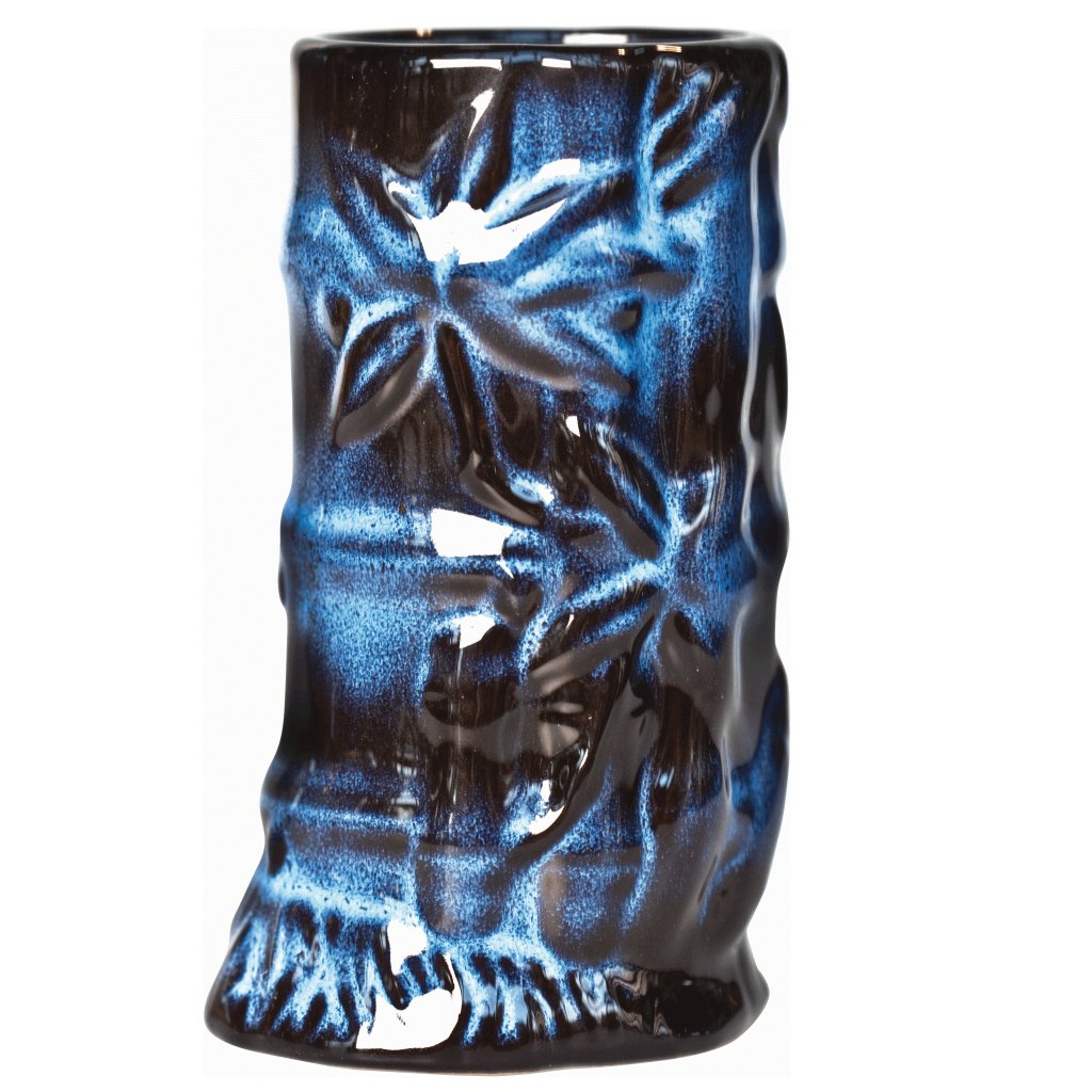 Tiki Bamboo ceramic mug 40 cl is a dark blue and black drinking glass in ceramic with the shape of a bamboo tube. Tiki Bamboo are South Sea-inspired drinking glasses with a Tiki feel that are perfect for serving fruity and exotic cocktails and drinks. Ideal to serve flaming drinks, or umbrella drinks with delicious garnish.