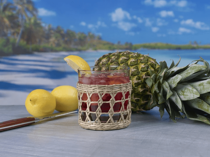 Urban Bar Gili Old Fashioned glass 30 cl with a decorative sleeve made of 100% natural environmentally friendly seagrass that is hand-woven. A tumbler glass that is ideal for serving whiskey drinks etc. from.